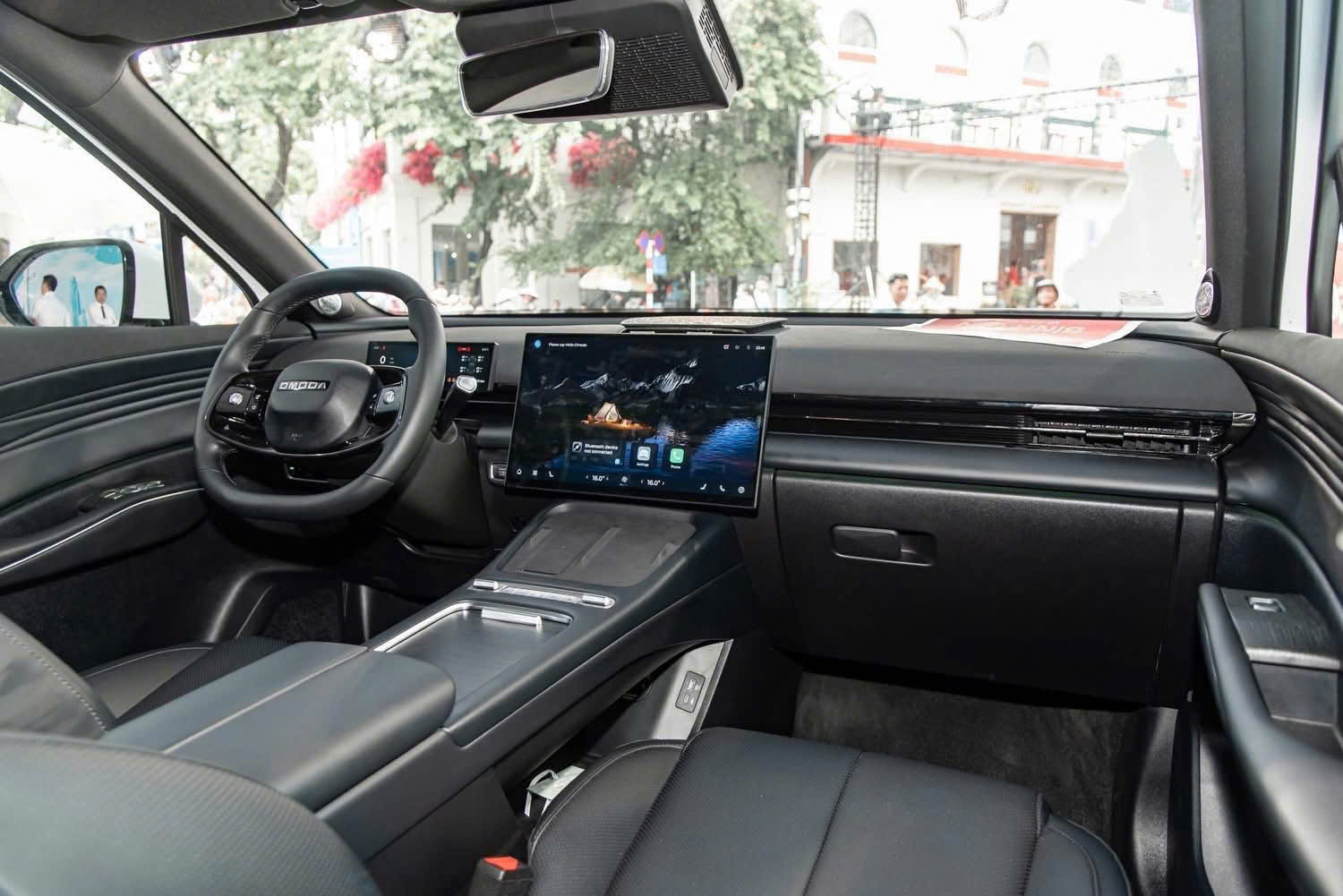 Bên trong khoang lái, Omoda C7 được trang bị màn hình đôi 24.6 inch độ phân giải cao, hỗ trợ Apple CarPlay/Android Auto không dây. Ghế ngồi bọc da cao cấp, chỉnh điện đa hướng, hàng ghế sau có thể ngả linh hoạt. Hệ thống âm thanh Sony 8 loa mang đến trải nghiệm giải trí sống động.